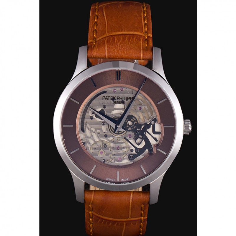 AAA Complicazioni Patek Philippe Brown Dial con Braccialetto in Pelle Marrone