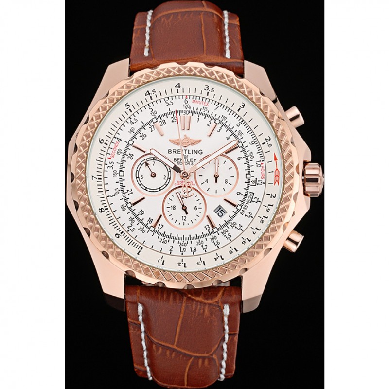Eccellente Breitling Bentley Motors Velocità cassa in oro quadrante bianco bracciale in pelle marrone 622.233