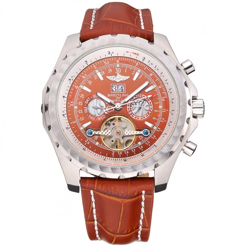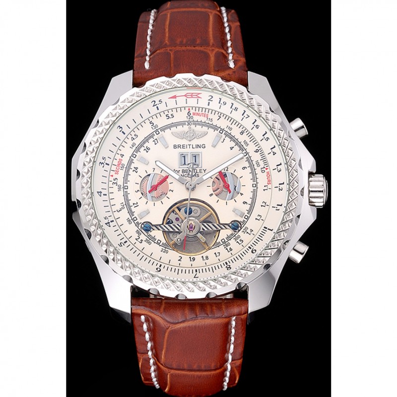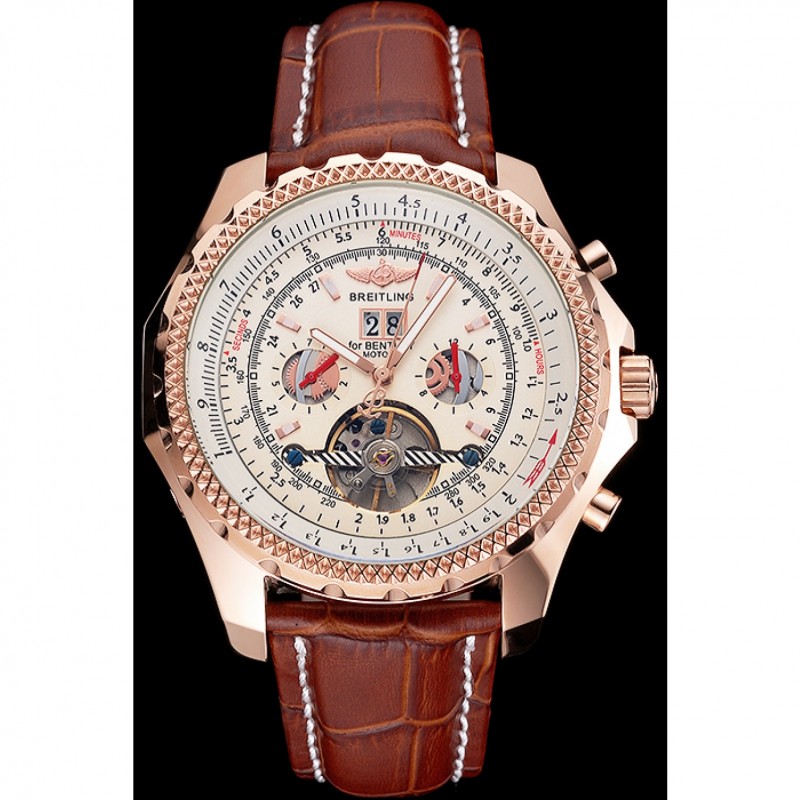 Alta qualità Orologi Replica Breitling for Bentley Mulliner Tourbillon quadrante bianco cassa in oro rosa cinturino in pelle marrone
