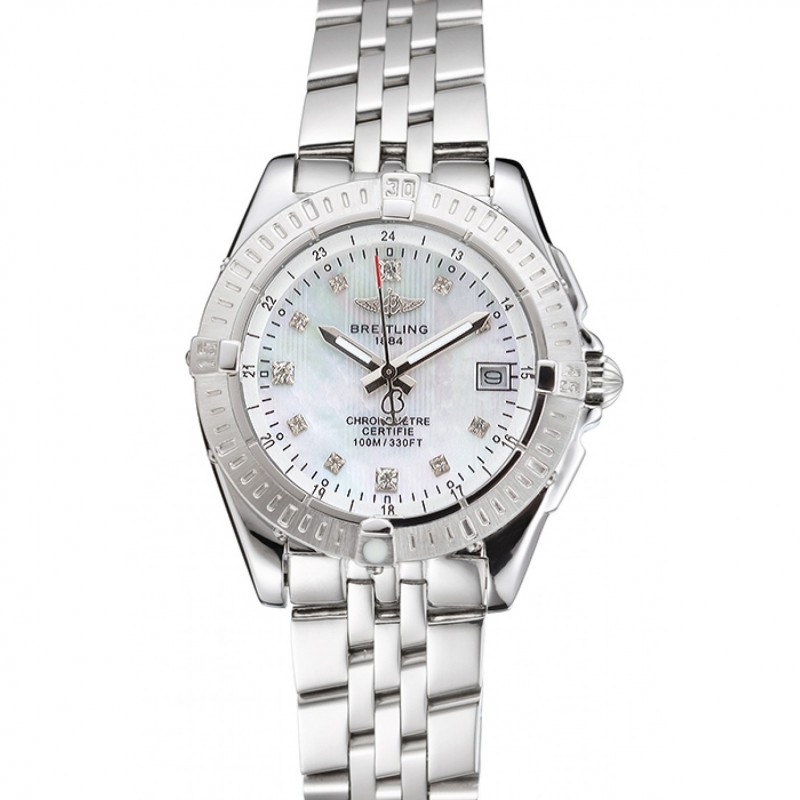Breitling Colt Lady Pearl Quadrante Cassa d’acciaio del diamante dei contrassegni di ora in acciaio e bracciale