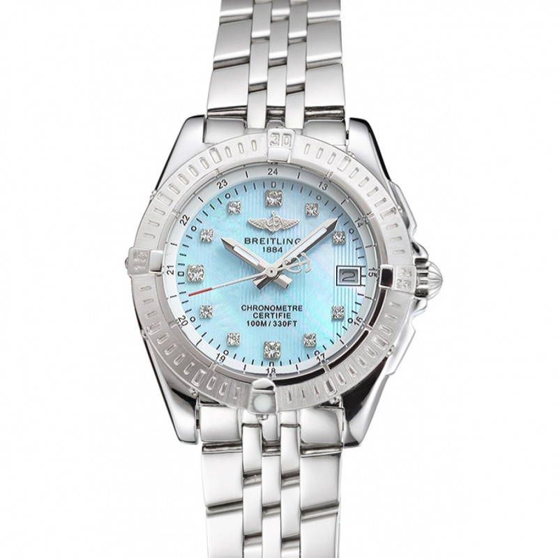Breitling Colt Lady luce quadrante blu Cassa in acciaio diamante dei contrassegni di ora in acciaio e bracciale