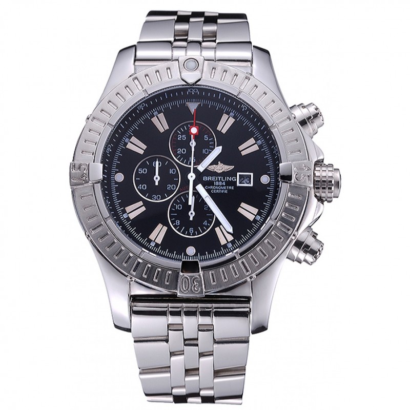 Eccellente Orologi Replica Breitling Chronomat Evolution quadrante nero Bracciale in acciaio inossidabile 622.515