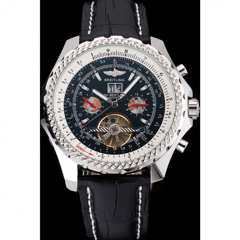 Pelle svizzera Breitling Bentley nero Croco Bracciale Quadrante nero 80286