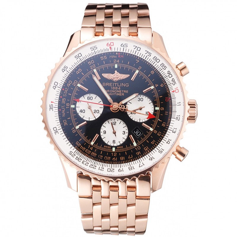 Svizzero Breitling Navitimer quadrante nero Rosa cassa e bracciale in oro