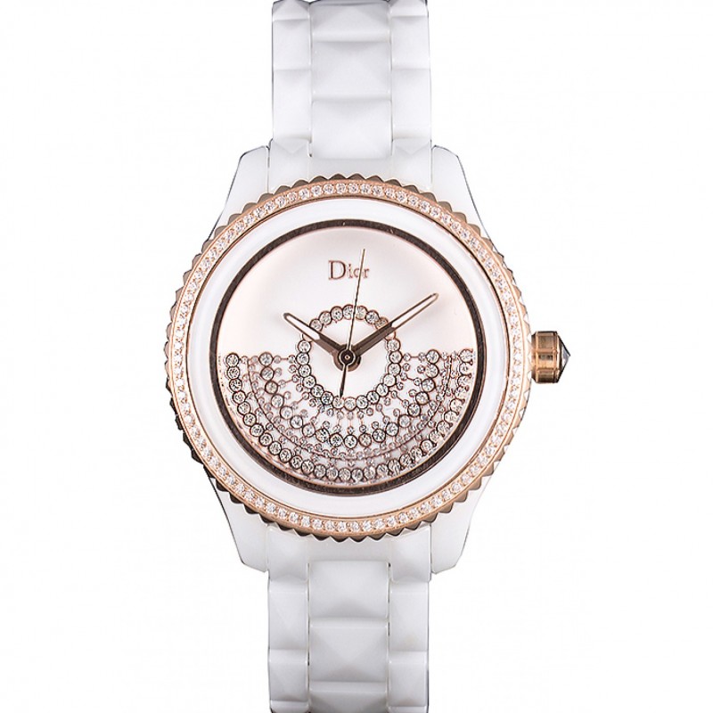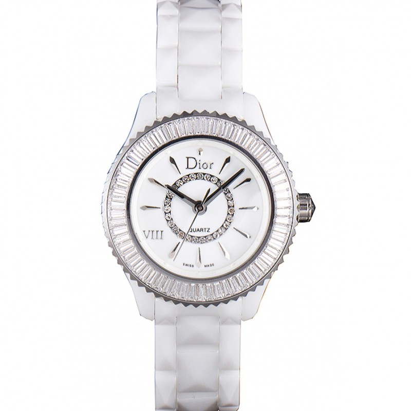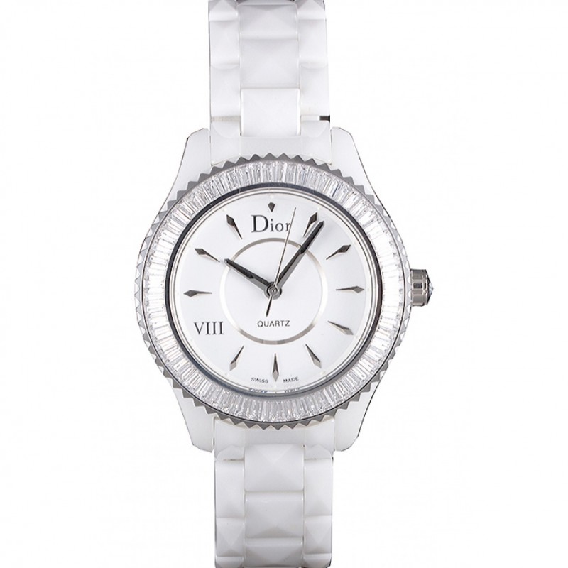 Alta qualità Diamanti Dior VIII taglio baguette bianco con diamanti incrostati Dial CD13 621.366