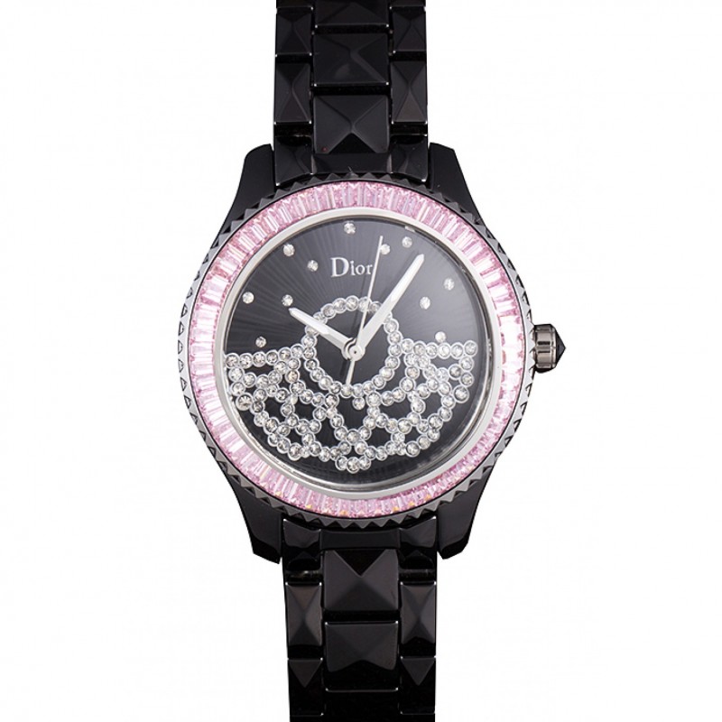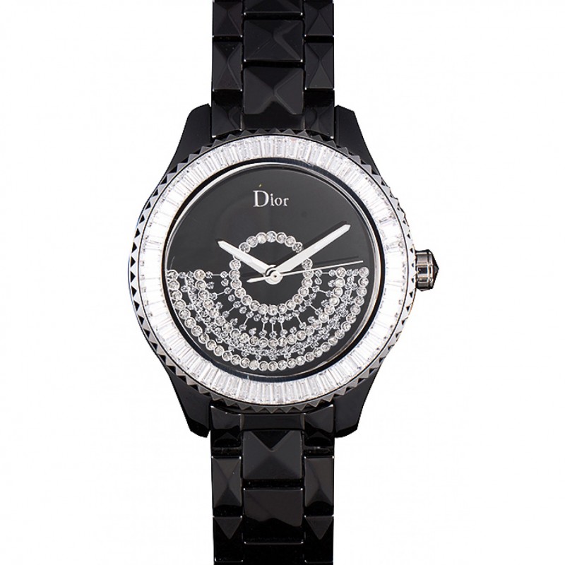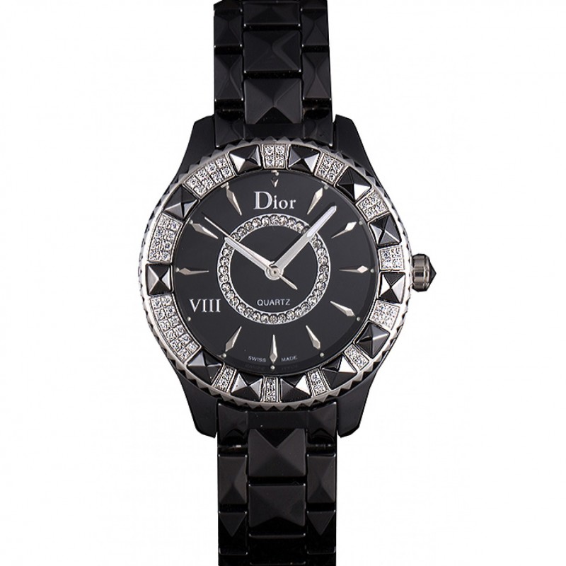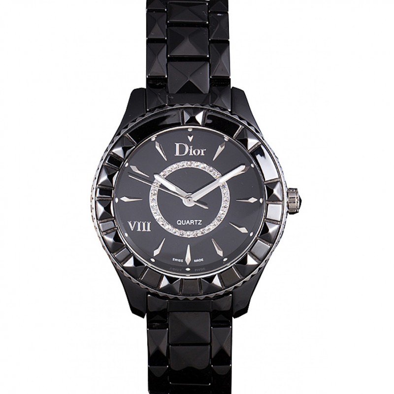 Economico Orologi Replica CD10 Dior VIII nero Bracciale lunetta in ceramica nera 621.363