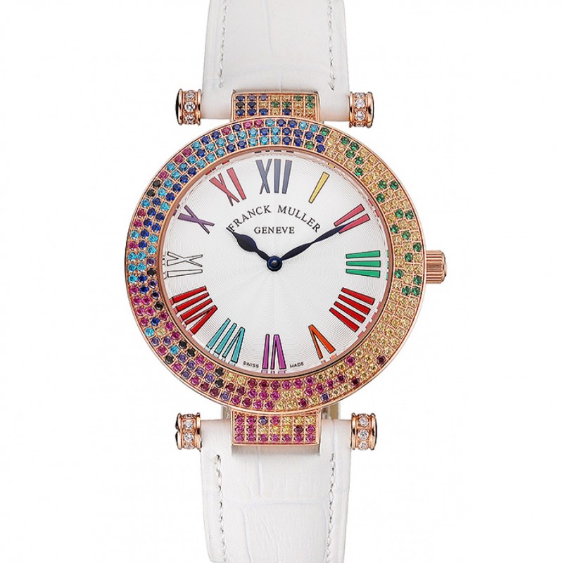 Migliore Orologi Replica Franck Muller Long Island Classic quadrante bianco cassa dell’orologio diamanti bianchi della fascia del cuoio 622.368