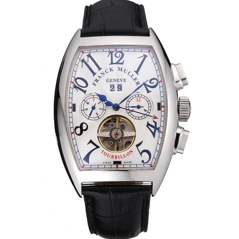 Alta qualità Franck Muller doppio Mistery Ronde quadrante nero Cassa in acciaio nero cinturino in pelle
