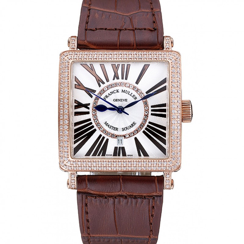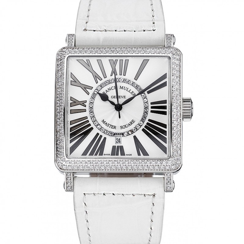 Lusso Orologi Replica Franck Muller Maestro Square Colore Sogni Diamanti cassa bianca della fascia del cuoio 622.356