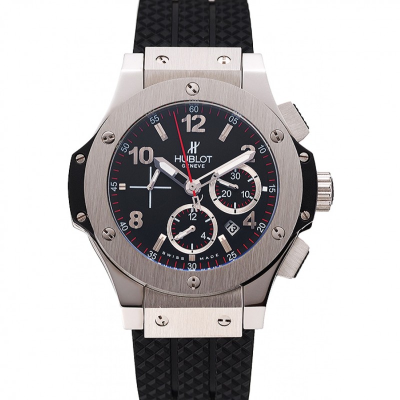 Lusso Svizzera Hublot Big Bang quadrante nero argento Case nero braccialetto di gomma 1453900