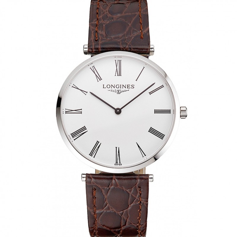 Svizzero Longines Grande Classique quadrante bianco numeri romani Cassa in acciaio cinturino in pelle marrone
