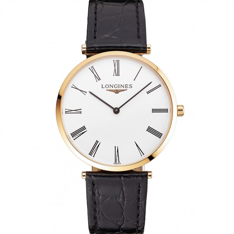 AAA Svizzero Longines Grande Classique quadrante bianco numeri romani cassa in oro nero Cinturino in pelle
