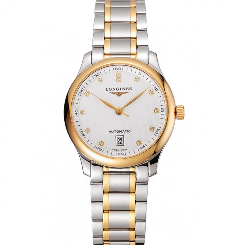 Svizzero Longines Master Quadrante Bianco Diamante ore Marcatori Two Tone Bracciale in acciaio inox 1453930