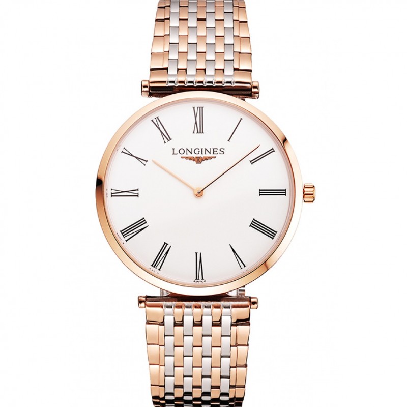 Svizzero Longines Grande Classique quadrante bianco numeri romani cassa in oro rosa Bracciale Two Tone
