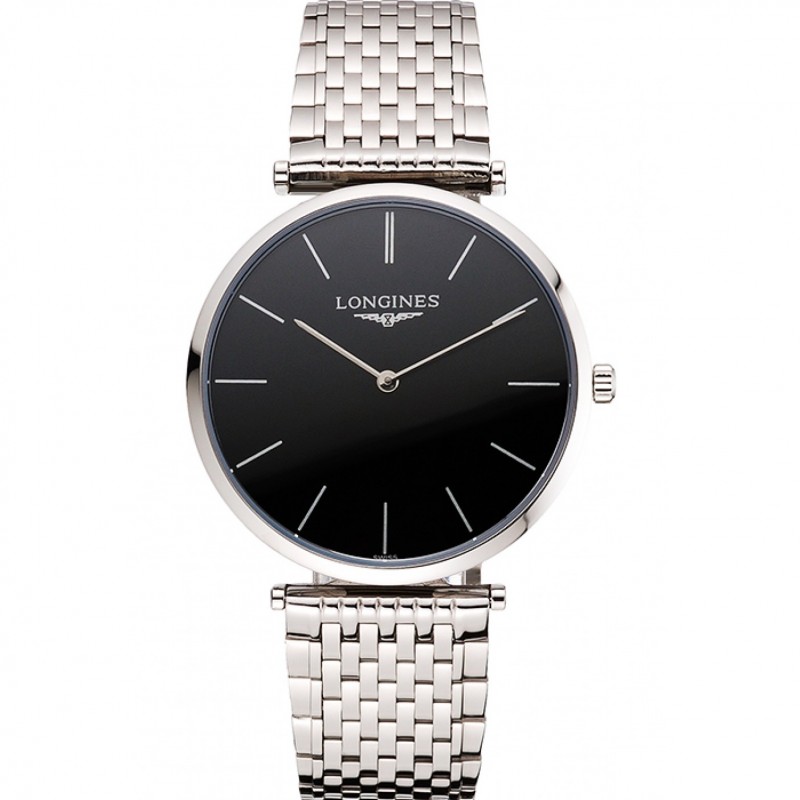 Svizzero Longines Grande Classique quadrante nero cassa in acciaio e bracciale