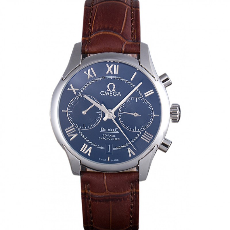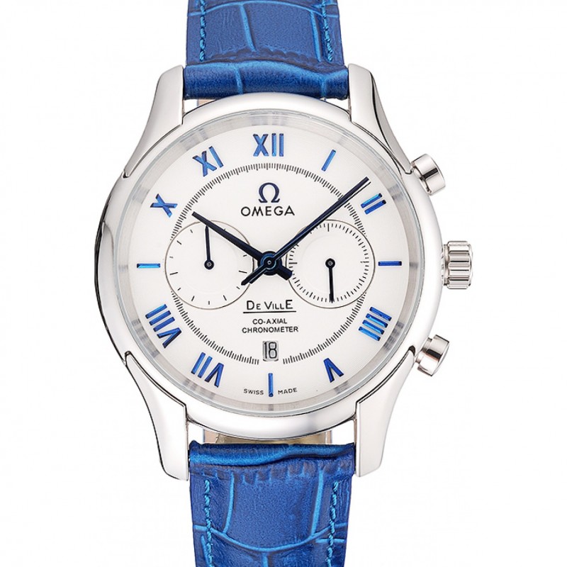 SS Orologi Replica Omega DeVille argento Lunetta con quadrante bianco e cinturino in pelle blu 621.568
