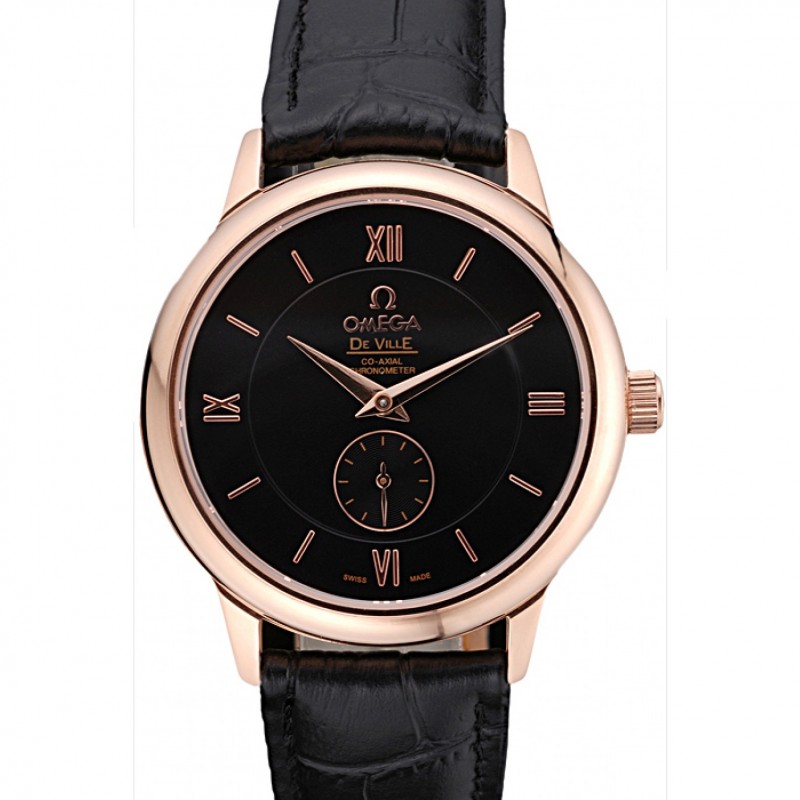 Lusso Orologi Replica Omega DeVille Prestige piccoli secondi quadrante nero in pelle oro bracciale nero della cassa 622.602
