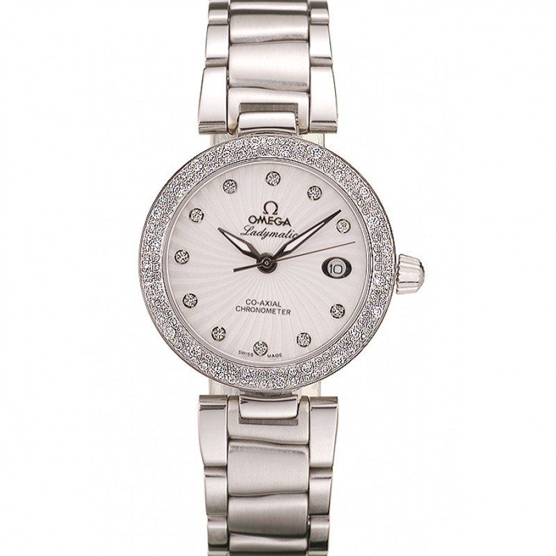 Omega DeVille Ladymatic iamond placcato lunetta quadrante bianco