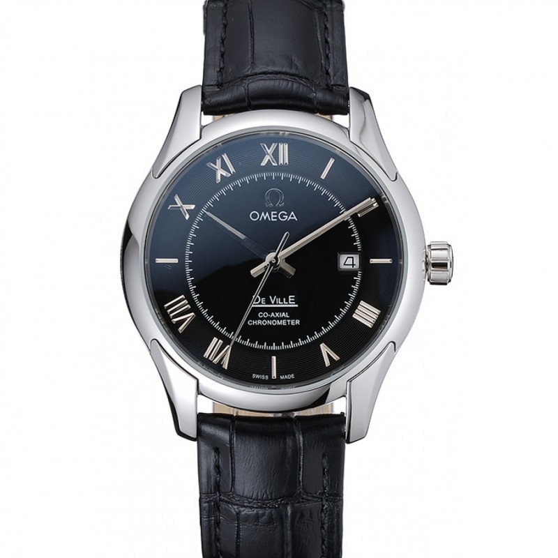 Migliore Omega DeVille Quadrante Nero Cassa in acciaio cinturino in pelle nera 622.829