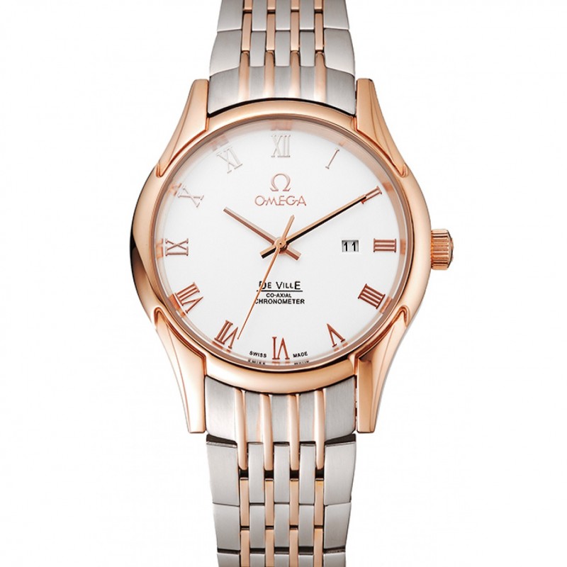 Eccellente Orologi Replica Omega De Ville quadrante bianco cassa in oro rosa due braccialetto Tone 1453781