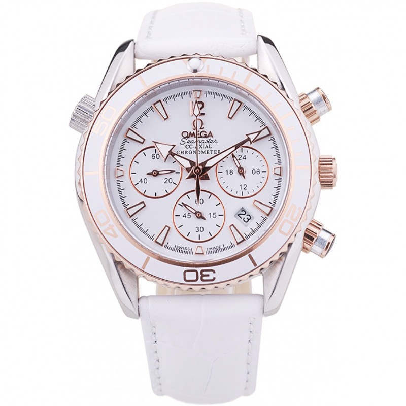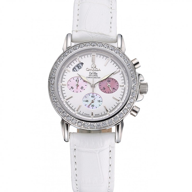 Omega De Ville Chronograph quadrante bianco cassa del diamante in acciaio inossidabile Bracciale in pelle bianca 622.453