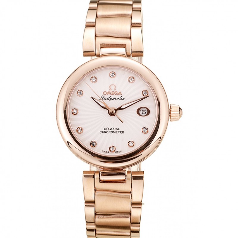 AAA Orologi Replica Dial Omega DeVille Ladymatic oro rosa cinturino in acciaio bianco