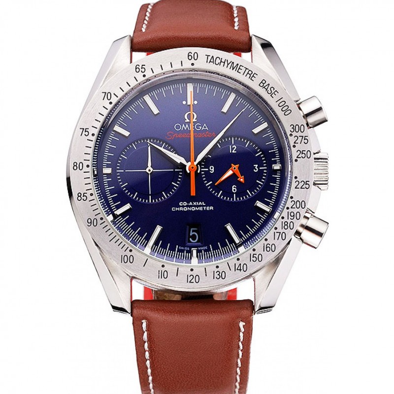 Omega Speedmaster Quadrante Blu Cassa in acciaio cinturino in pelle marrone 622.807