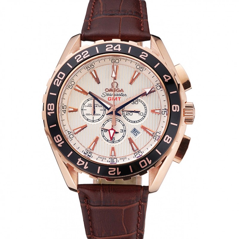 Omega Seamaster Aqua Terra Chrono GMT Ivory Dial braccialetto in pelle marrone 622.534