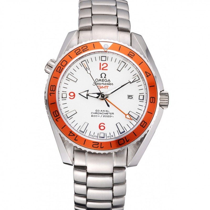 Alta qualità Orologi Replica Omega Seamaster GMT quadrante bianco Case Orange lunetta in acciaio inossidabile 622.718