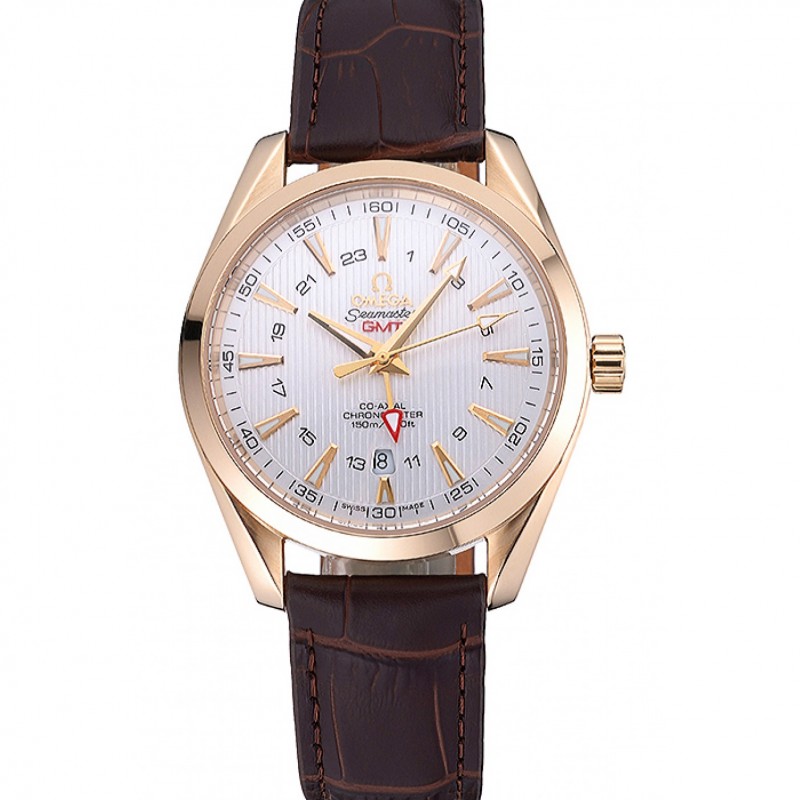 Lusso Omega Seamaster Planet Ocean GMT quadrante bianco cassa in oro Brown della fascia del cuoio 622.399