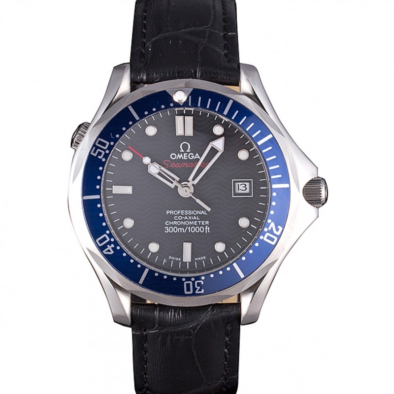 SS Orologi Replica Dial Omega Seamaster nero con cinturino in pelle nera 621.574