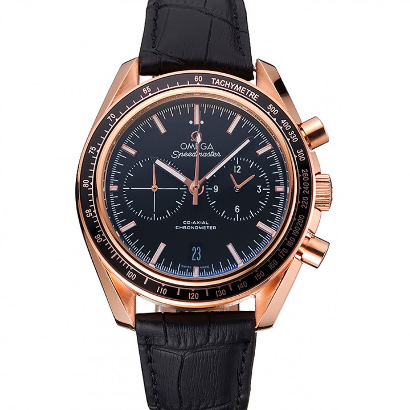 Omega Speedmaster quadrante nero cassa in oro cinturino in pelle nera 622.809