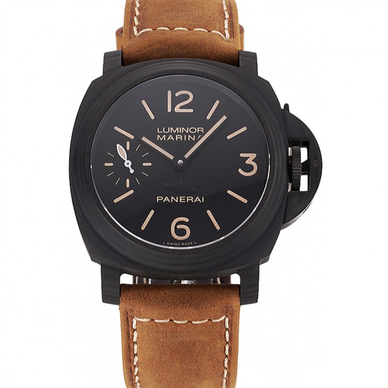 Economico Orologi Replica Svizzero Panerai Luminor Marina quadrante nero Caso Marrone Nero cinturino in pelle
