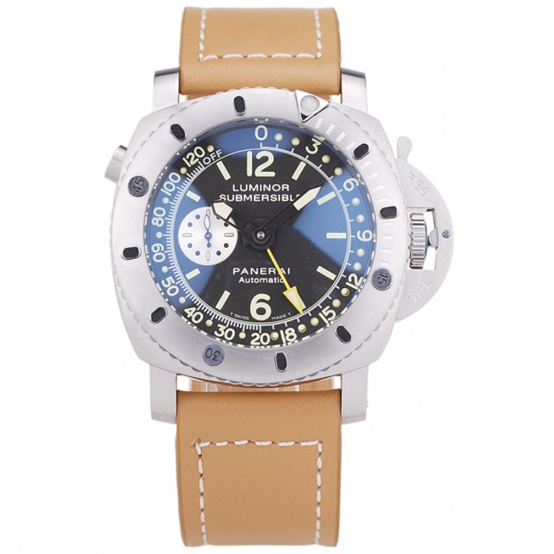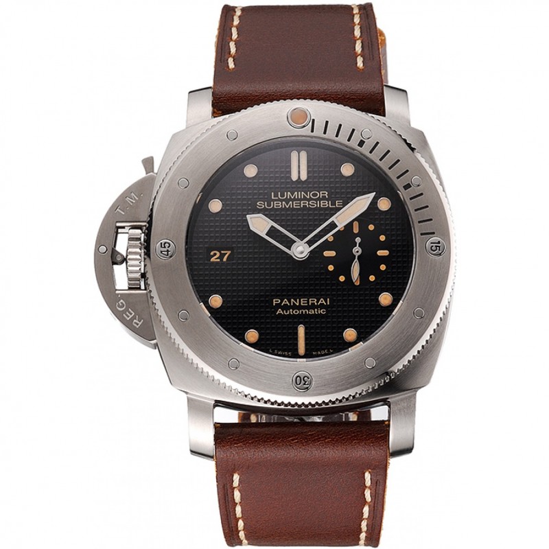 Svizzero Panerai sommergibili Mancino cinturino in pelle nera goffrata Cassa Cassa in acciaio Brown