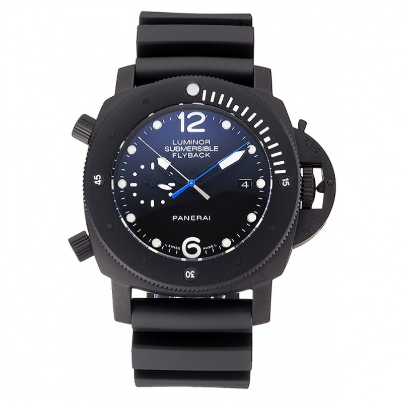 Panerai Luminor Flyback sommergibile Data quadrante nero caso ionizzata Nero Nero cinturino in caucciù