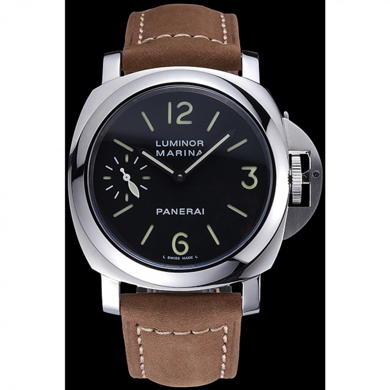 Economico Orologi Replica Panerai Luminor sommergibile quadrante nero Cassa in acciaio nero Lunetta Nero cinturino in pelle