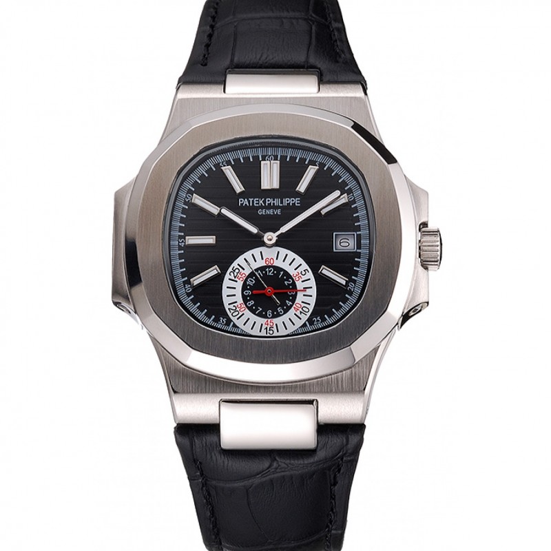 Patek Philippe Nautilus quadrante nero Cassa in acciaio nero cinturino in pelle