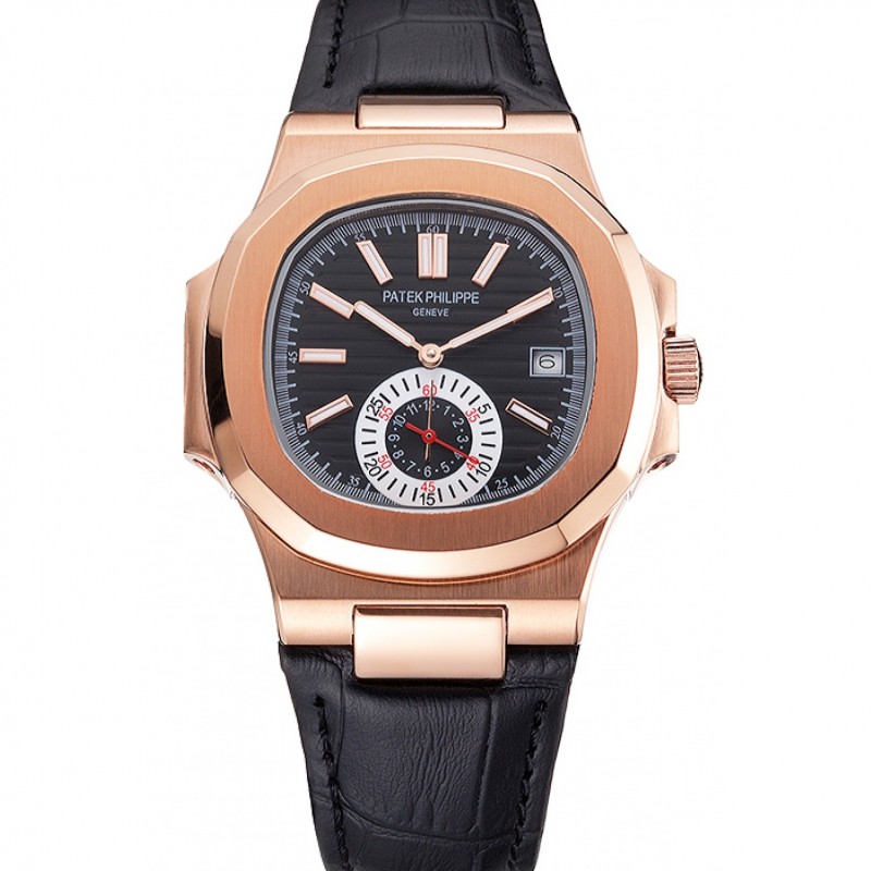 Patek Philippe Nautilus quadrante nero cassa in oro rosa nera Cinturino in pelle