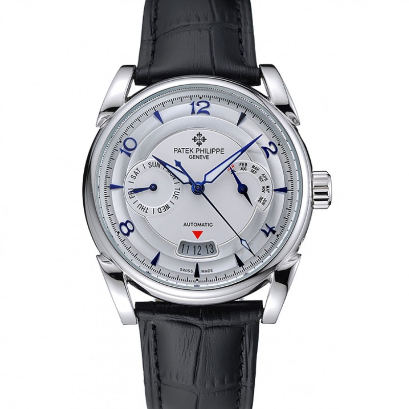 Migliore Patek Philippe Grand Complicazioni calendario perpetuo Bracciale in pelle nera quadrante bianco