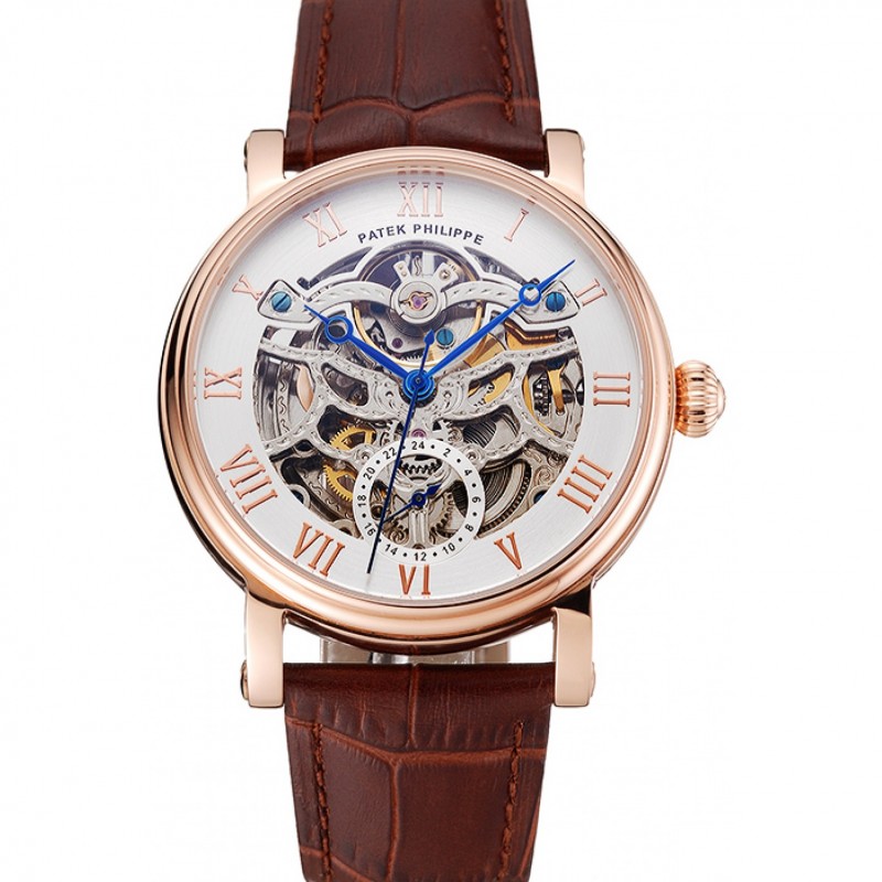 Patek Philippe Grand Complicazioni scheletro quadrante bianco cassa in oro rosa cinturino in pelle marrone 1453808