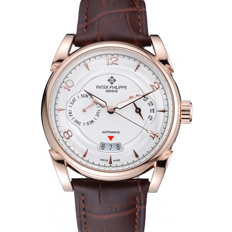 Alta qualità Complicazioni Patek Philippe Chronograph quadrante bianco in pelle oro bracciale Caso Brown 1454236