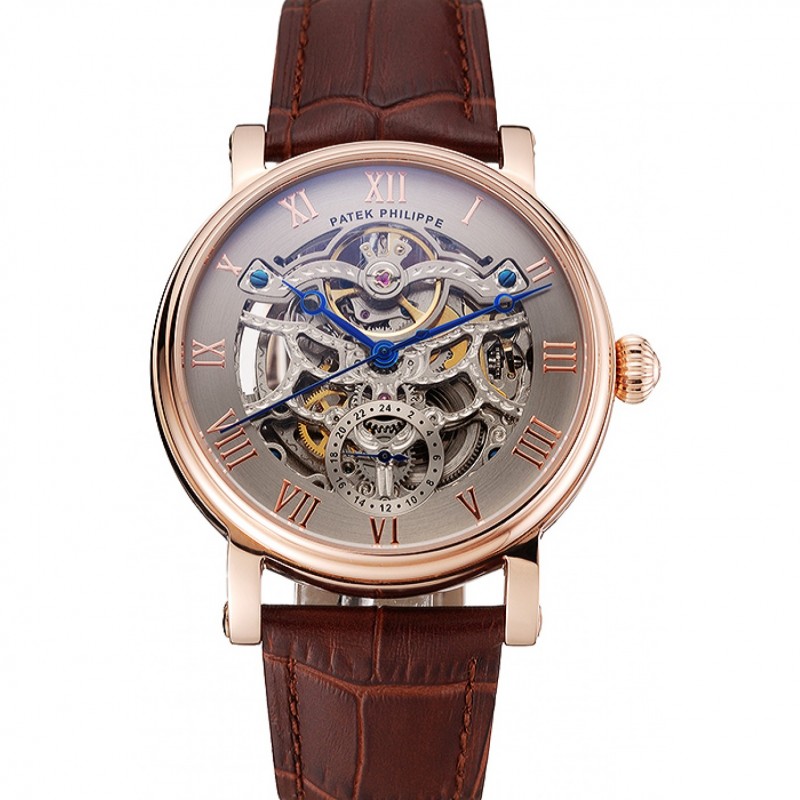 Patek Philippe Grand Complicazioni di scheletro quadrante grigio cassa in oro rosa cinturino in pelle marrone 1453807
