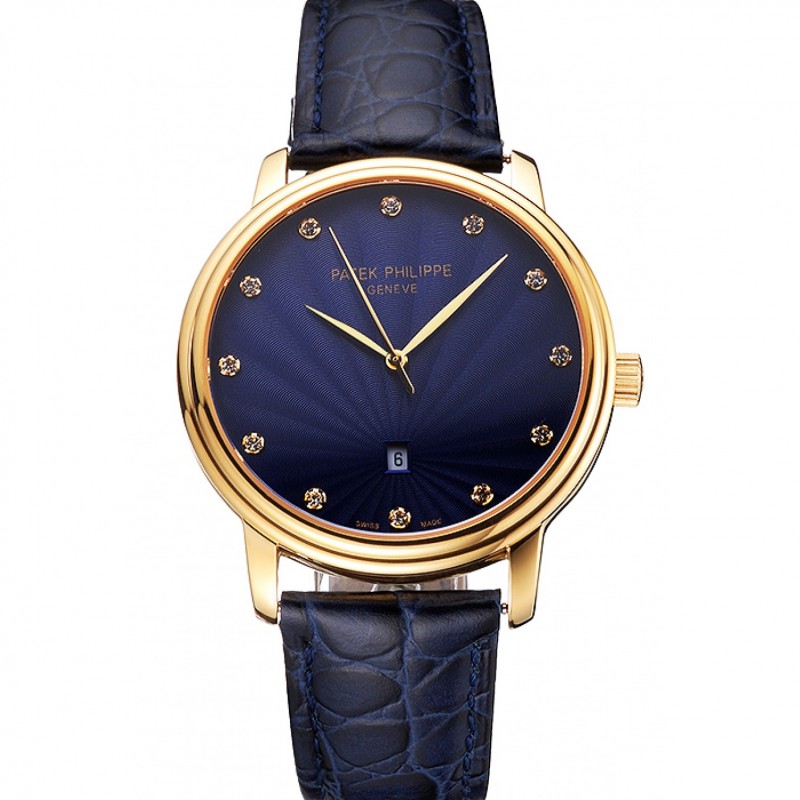 AAA Patek Philippe Calatrava Data Blu guilloché cassa in oro blu Cinturino in pelle