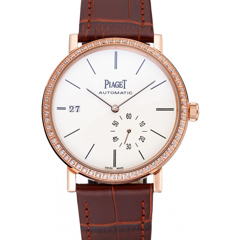 Piaget Altiplano diamante cassa in oro quadrante bianco bracciale in pelle marrone 622.627
