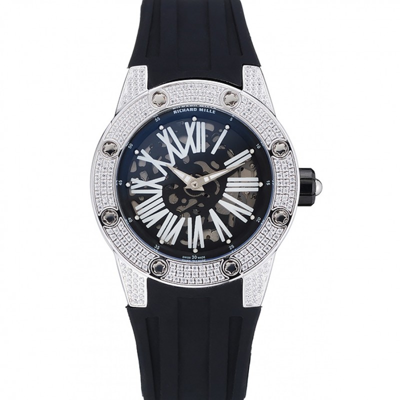 Richard Mille RM 033 extra piatto automatico bracciale della cassa del diamante di gomma nera 1.454.195