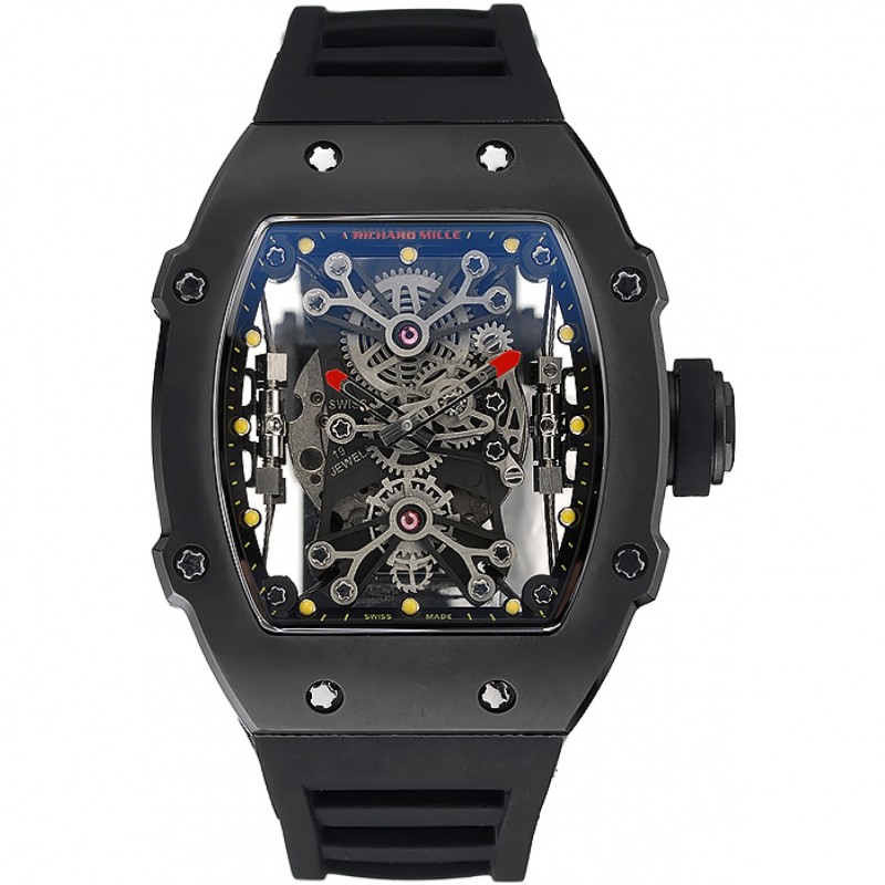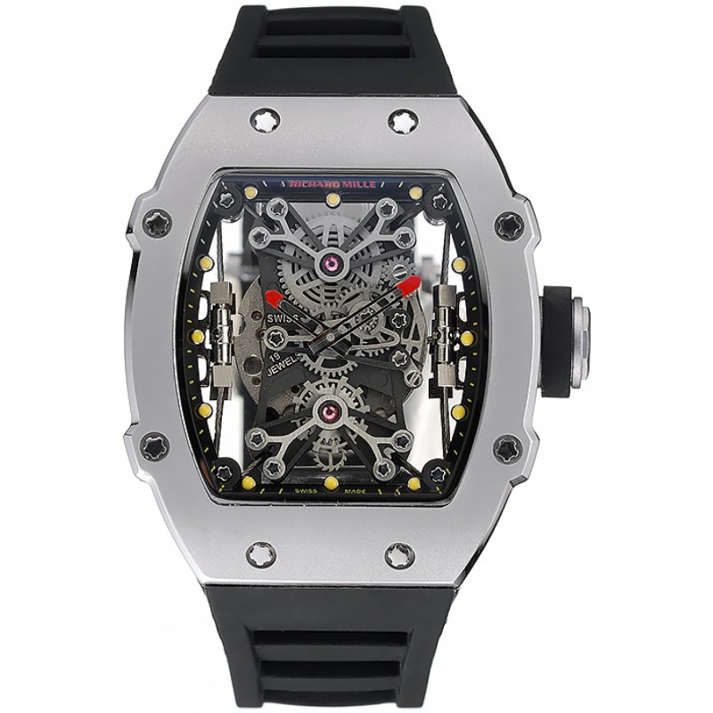 Lusso Orologi Replica Richard Mille Tourbillion Rafael Nadal RM27-01 caso d’argento braccialetto di gomma nera 1.454.254