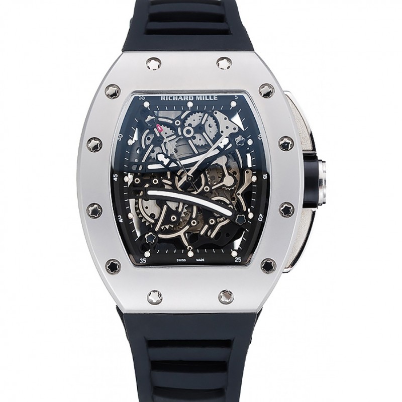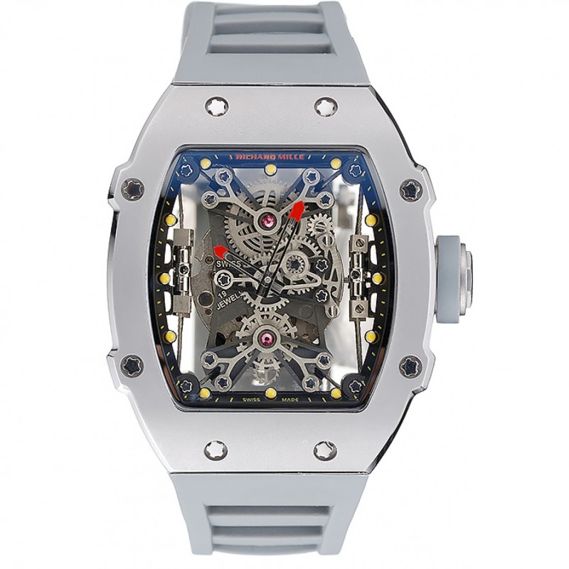 Richard Mille Tourbillion Rafael Nadal RM 27-01 Argento Caso braccialetto di gomma bianca 1.454.255