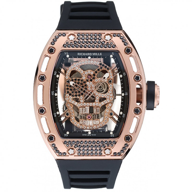 Richard Mille Tourbillon RM 052 Skull cassa in oro rosa braccialetto di gomma nera 1.454.252