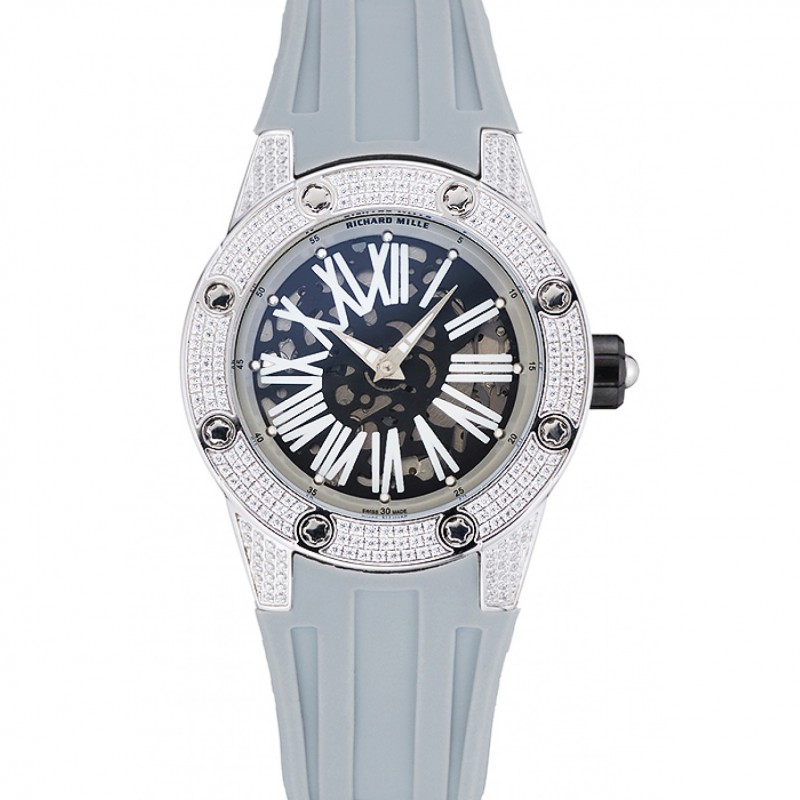 Migliore Orologi Replica Richard Mille RM 033 extra piatto automatica braccialetto di diamanti Custodia grigia gomma 1.454.194