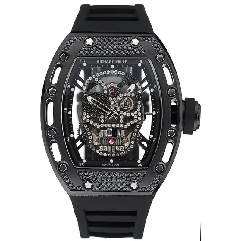 Lusso Orologi Replica Richard Mille Tourbillon RM 052 Skull bracciale in caucciù nero Case nero 1.454.260